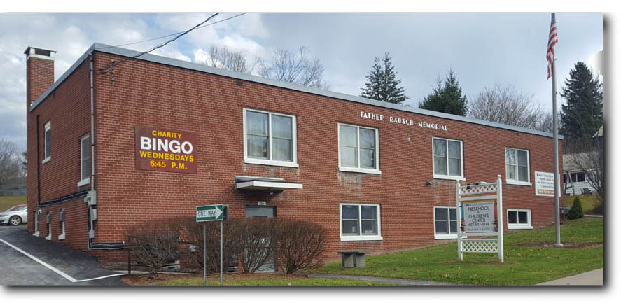 The Fr. Rausch Memorial Hall was built in the 1950's through the efforts of Fr. John Rausch and the parishioners during his tenure from 1935-1955. The hall is utilized for religious education, bingo, dinners, social events, pre-school, Community Children’s Center, food bank, shelter, and other community activities.